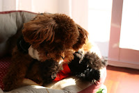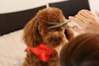 Mommy finally did the first hair cut for DiDee last night !!! Hehehe, it's your turn DiDee. Hey, look at DiDee's color, he is turning into dark chocolate color with a little bit of red tone like me. I think he looks so much like me after his first hair cut, what do you think? Good job Mommy !!