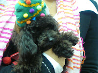 媽咪打电話番嚟, 話買咗D聖誕禮物比我,等我仲開心到不得了,係咁坐喺門口等!! 点知係頂有對角既帽, 攪到我冇哂心機,成晚都唔知点咁,人哋最唔鍾意戴帽同著褲架嘛Mommyyyyyy~~~